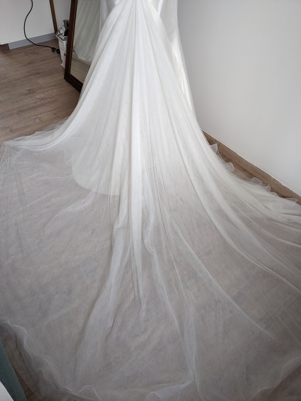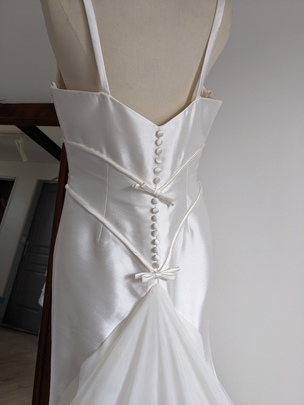 Défauts: (voir photos) Quelques trous dans le tulle de la traîne