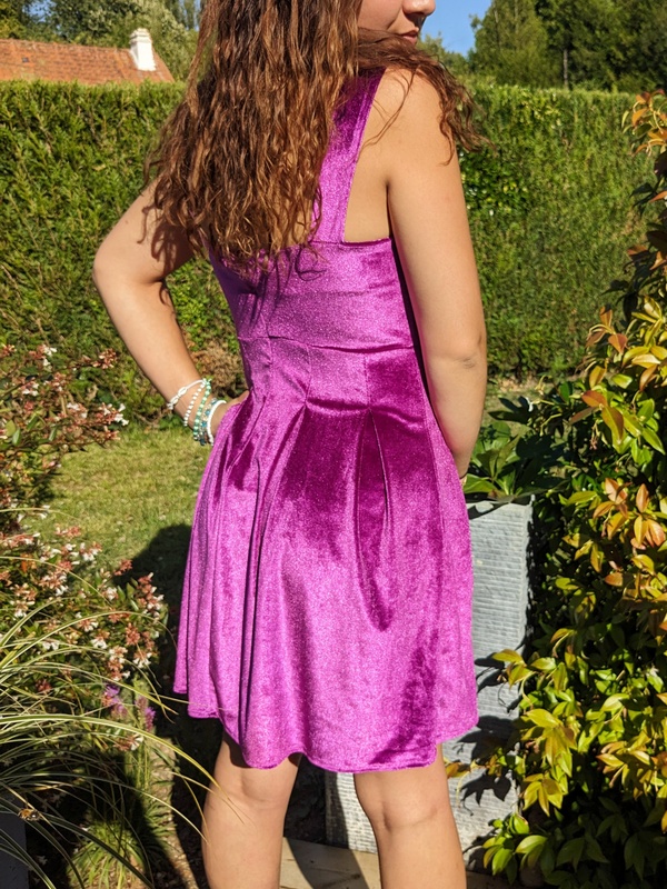 Robe courte velours violet. Matière stretch et confortable.