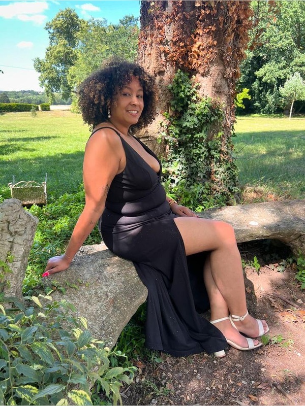 Robe longue fendue, noire légèrement pailletée. Bretelles réglables, matières souple et stretch.